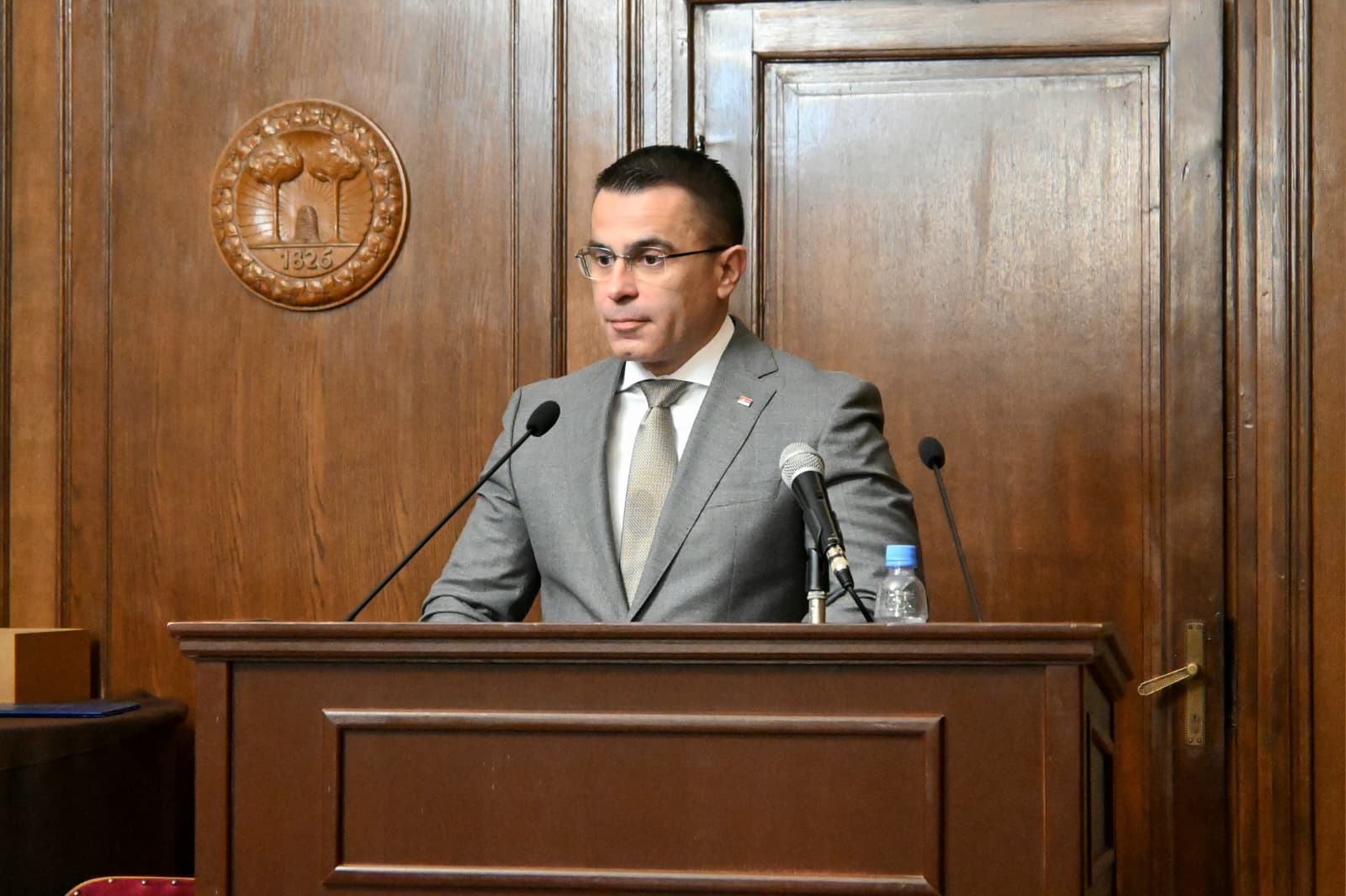 Министар Ђорђе Милићевић се обратио у име Владе Републике Србије и честитао два велика јубилеја: 850 година од рођења Светог Саве и 200 година од оснивања најстсрије српске културне институције.